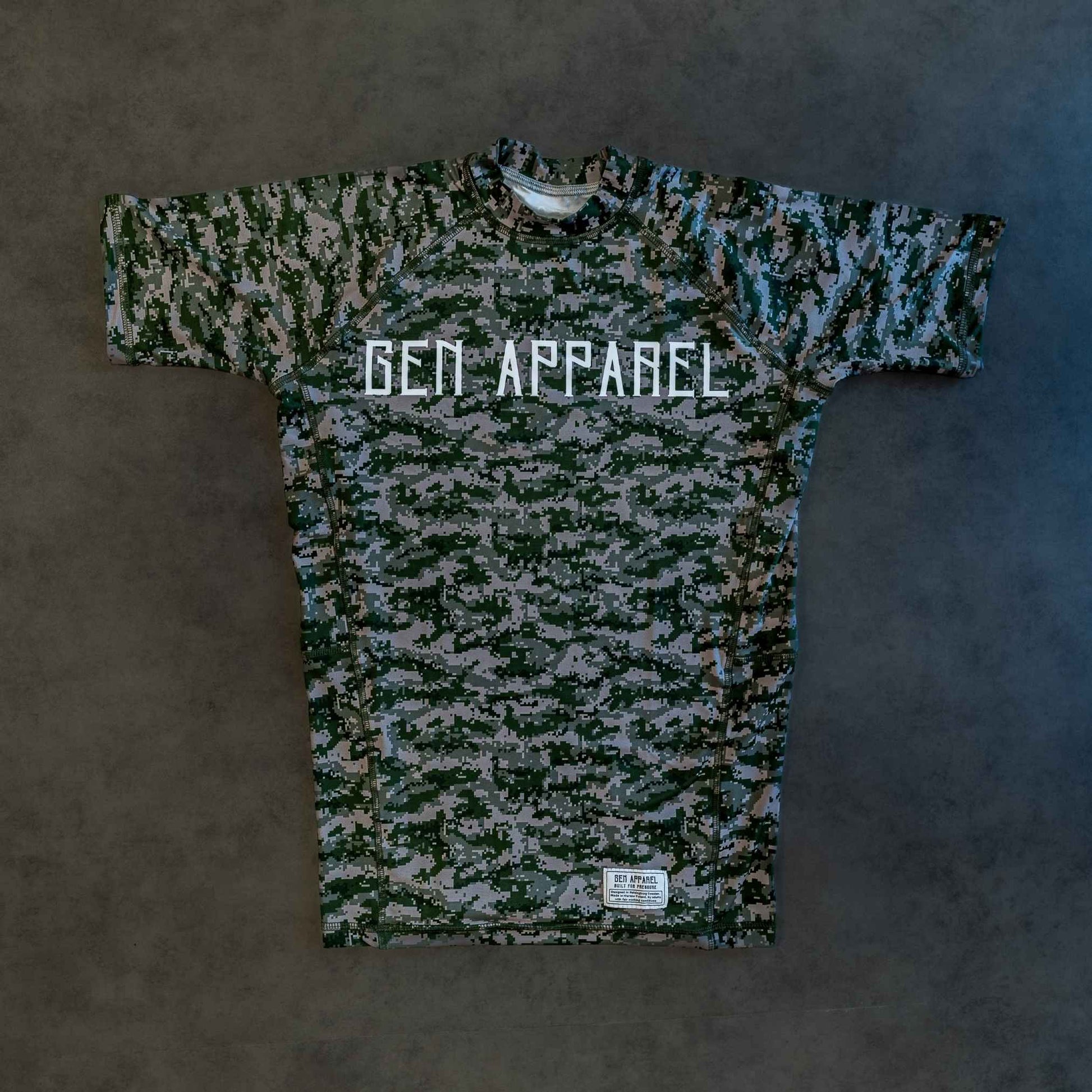 Engineered for daily rolls and comp prep. This green camo rashguard provides muscle support, ventilation, and durability in every seam. A functional, no-nonsense top for serious training.